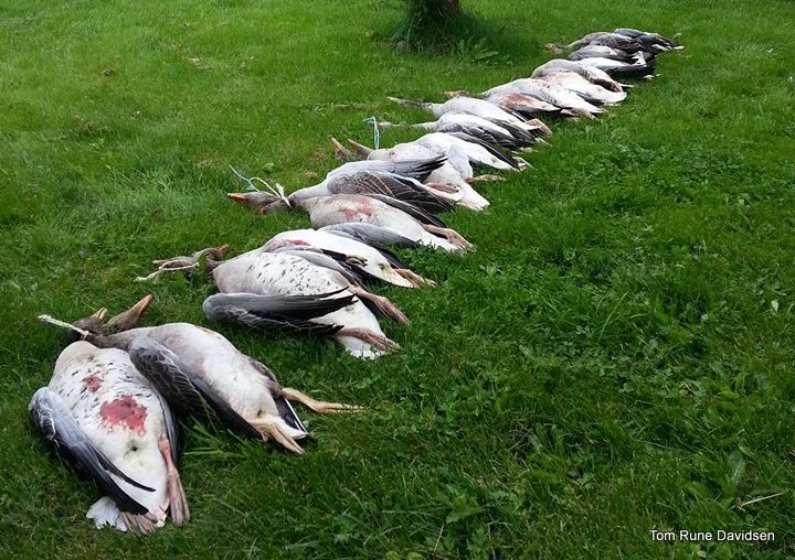 Grågåsjakta startet med et brak i år og flere fikk uttelling allerede i de første timene av jakten. Jaktlaget Davidsen kunne glede seg over hele 20 gås på førstenatten. Arne Follestad, forsker ved NINA, forteller at det ble registrert 80 gås felt det første døgnet. Vi håper å få mer statiskiske data om gåsjakta fra Arne Follestad i tiden som kommer.